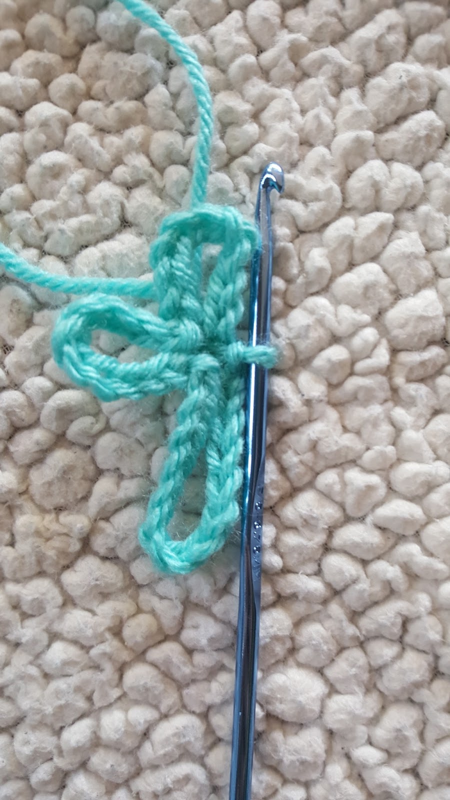 and slst back in first ch to form another ring. (4 rings made) Tie off and leave